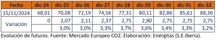 El precio del CO2 crece a un ratio anual medio anual de 3,3% entre 2025 y 2032.